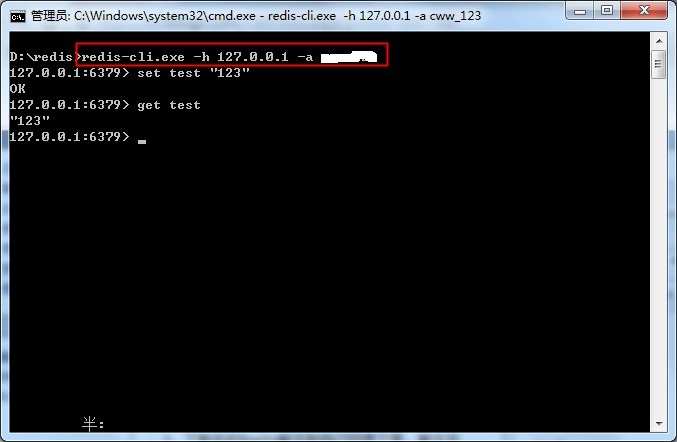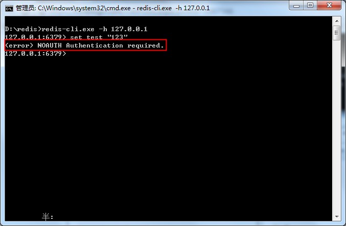 這里說明沒輸入密碼,無權限,所以我們需要輸入密碼了,redis-cli.exe -h 127.0.0.1 -a 密碼