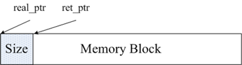 Redis的內存管理主要通過源碼中zmalloc.h和zmalloc.c兩個文件來實現的。Redis為了方便內存的管理,在分配一塊內存之后,會將這塊內存的大小存入內存塊的頭部。如圖所示,real_ptr是redis調用malloc后返回的指針。redis將內存塊的大小size存入頭部,size所占據的內存大小是已知的,為size_t類型的長度,然后返回ret_ptr。當需要釋放內存的時候,ret_ptr被傳給內存管理程序。通過ret_ptr,程序可以很容易的算出real_ptr的值,然后將real_ptr傳給free釋放內存。