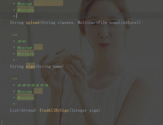 package com.ckf.mongodb_punch.controller; import com.ckf.mongodb_punch.entity.Attend; import com.ckf.mongodb_punch.service.AttendService; import org.springframework.beans.factory.annotation.Autowired;import org.springframework.web.bind.annotation.GetMapping;import org.springframework.web.bind.annotation.PostMapping;import org.springframework.web.bind.annotation.RestController; import org.springframework.web.multipart.MultipartFile; import java.util.HashMap; import java.util.List; import java.util.Map; @RestController public class AttendController{ @Autowired private AttendService attendService;@GetMapping("/sign") public String sign(String name){ /** * 將名字傳給服務層,mongodb修改登錄狀態 */ attendService.sign(name); return "ok"; } /** * 上傳文件 * @param classes * @param nameListExcel * @return */ @PostMapping("/upload") public String upload(String classes, MultipartFile nameListExcel){/** * 接收到前臺傳過來的文件對象,交給service層或者Excel工具類來解析數據* System.out.println("接收前臺表單提交數據:"+classes+nameListExcel);*/ String result = attendService.upload(classes,nameListExcel);return result;} /** * 查詢未簽到同學 和已簽到同學* @return */ @GetMapping("/list")public Map list(){ Map result = new HashMap<String,Object>(); /** * 已簽到 */ List<Attend> complete = attendService.findAllBySign(1);result.put("complete",complete); /** * 未簽到 */ List<Attend> incomplete = attendService.findAllBySign(0);result.put("incomplete",incomplete); return result;} }6.application.yml