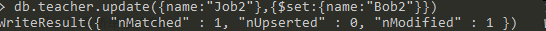 查看數據: db.集合名.find(<query filter>, <projection>)db.集合名.findone(<query filter>, <projection>):只返回一個文檔db.teacher.find()