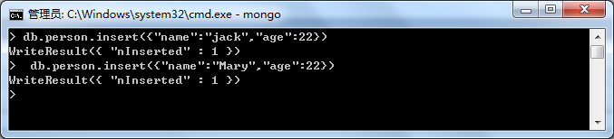 db.person.insert({"name":"jack","age":22})db.person.insert({"name":"Mary","age":22})
