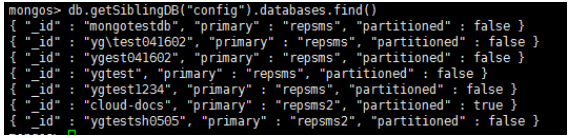 6.5.3 也可將命令切換到config數據庫下,執行db.chunks.find()查看。可以輸入制定參數,例如,查看分片repsms2,集合cloud-docs.PushMessageRecord的塊情況(cloud-docs為數據庫名稱)