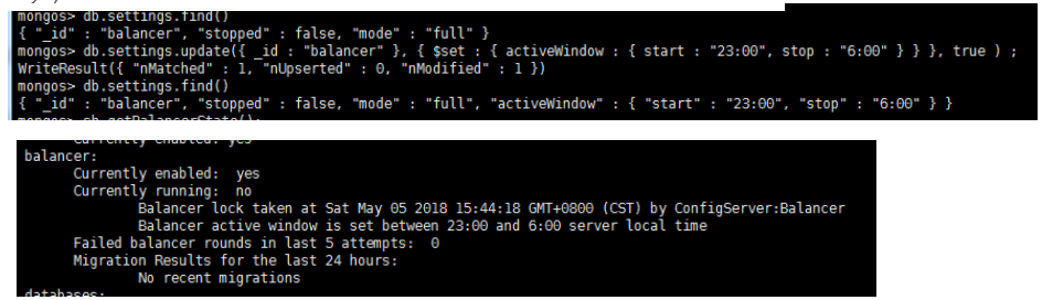 6.3 停Balancer 進程 sh.stopBalancer()和開啟Balancer 進程