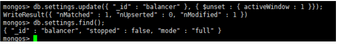 db.settings.update({ _id : "balancer" }, { $set : { activeWindow : { start : "23:00", stop : "6:00" } } }, true ) ;