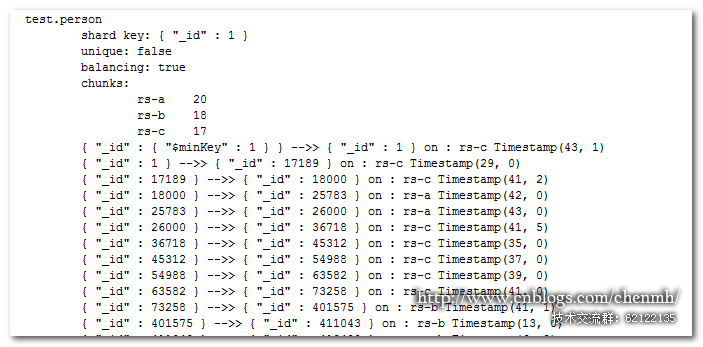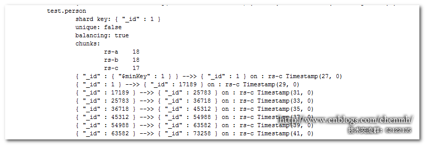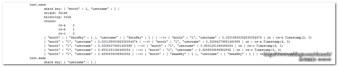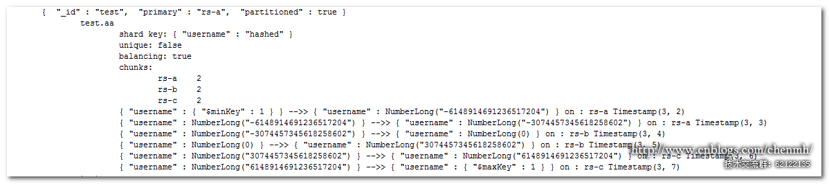 創(chuàng)建分片時,只在主分片上創(chuàng)建了一個塊{ "username" : { "$minKey" : 1 } } -->> { "username" : { "$maxKey" : 1 } } on : rs-a Timestamp(1, 0) 。