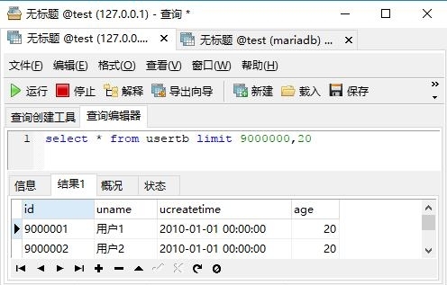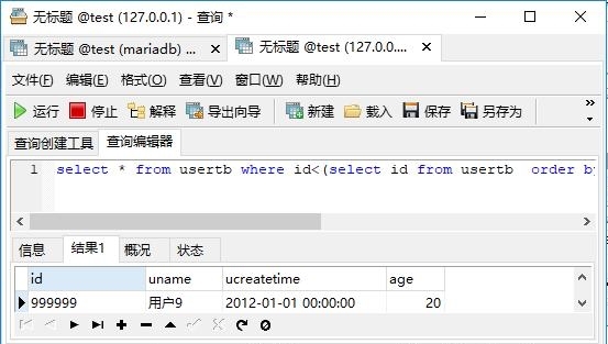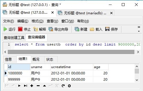 再查詢 select * from usertb where id<1000000 order by id desc limit 20