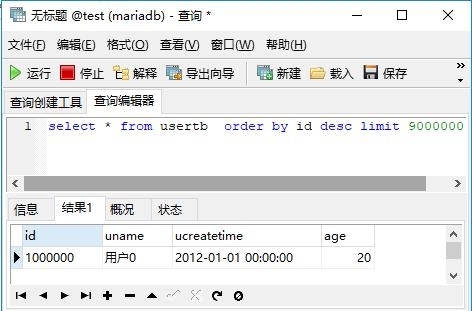 下面分別在MYSQL 和mariaDB 建庫建表 插入千萬級的測試數據 ID為主鍵,數據庫引擎:MyISAM