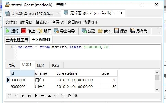 將上面的語句拆分成兩條sql語句在MariaDB里執行查詢如下: