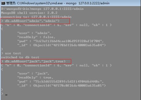 作為數據庫軟件,我們肯定不想誰都可以訪問,為了確保數據的安全,mongodb也會像其他的數據庫軟件一樣可以采用用戶驗證的方法,那么該怎么做呢?其實很簡單,mongodb提供了addUser方法,還有一個注意點就是如果在admin數據庫中添加將會被視為“超級管理員”。