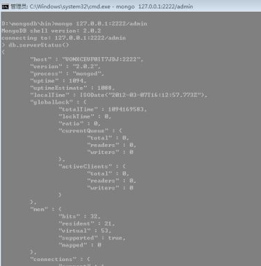 這個函數可以獲取到mongodb的服務器統計信息,其中包括 :全局鎖,索引,用戶操作行為等等這些統計信息,對管理員來說非常重要。