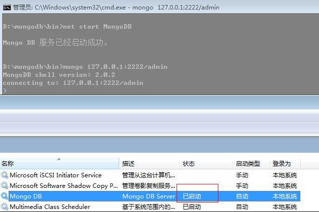我之前的文章都是采用console程序來承載,不過在生產環境中這并不是最佳實踐,誰也不愿意在機器重啟后滿地找牙似找mongodb,在mongodb里面提供了一個叫做“服務寄宿”的模式,我想如果大家對wcf比較熟悉的話很容易聽懂。好了,我們實踐一下,這里我開一下D盤里面的mongodb。