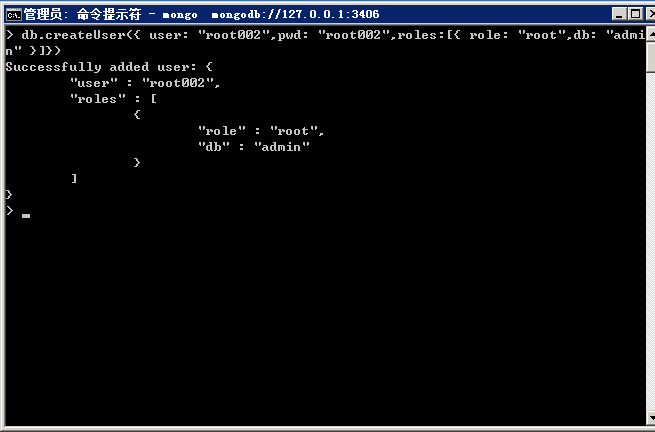 使用剛創建的用戶登錄:db.auth("root002","root002")