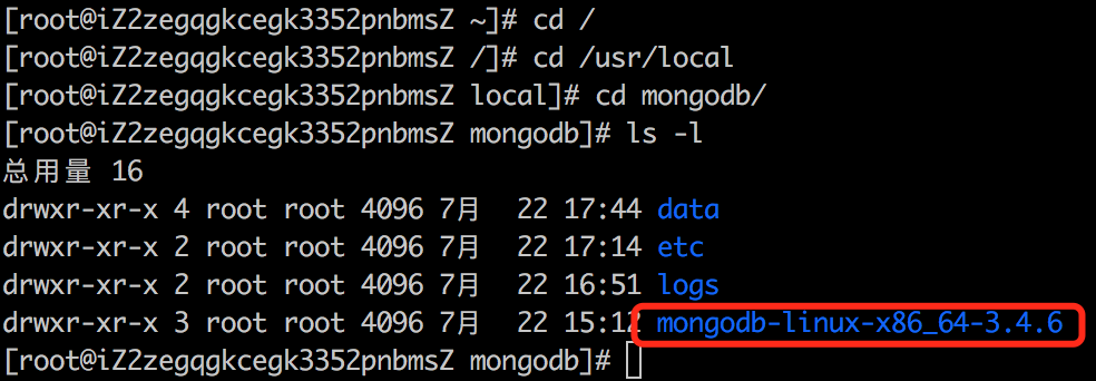cd /user/local //進(jìn)入localmkdir mongodb //創(chuàng)建mongodb文件夾cd / //進(jìn)入根目錄mv mongodb-linux-x86_64-3.4.6 /usr/local/mongodb /*將剛才的解壓包移入 /usr/local/mongodb*/