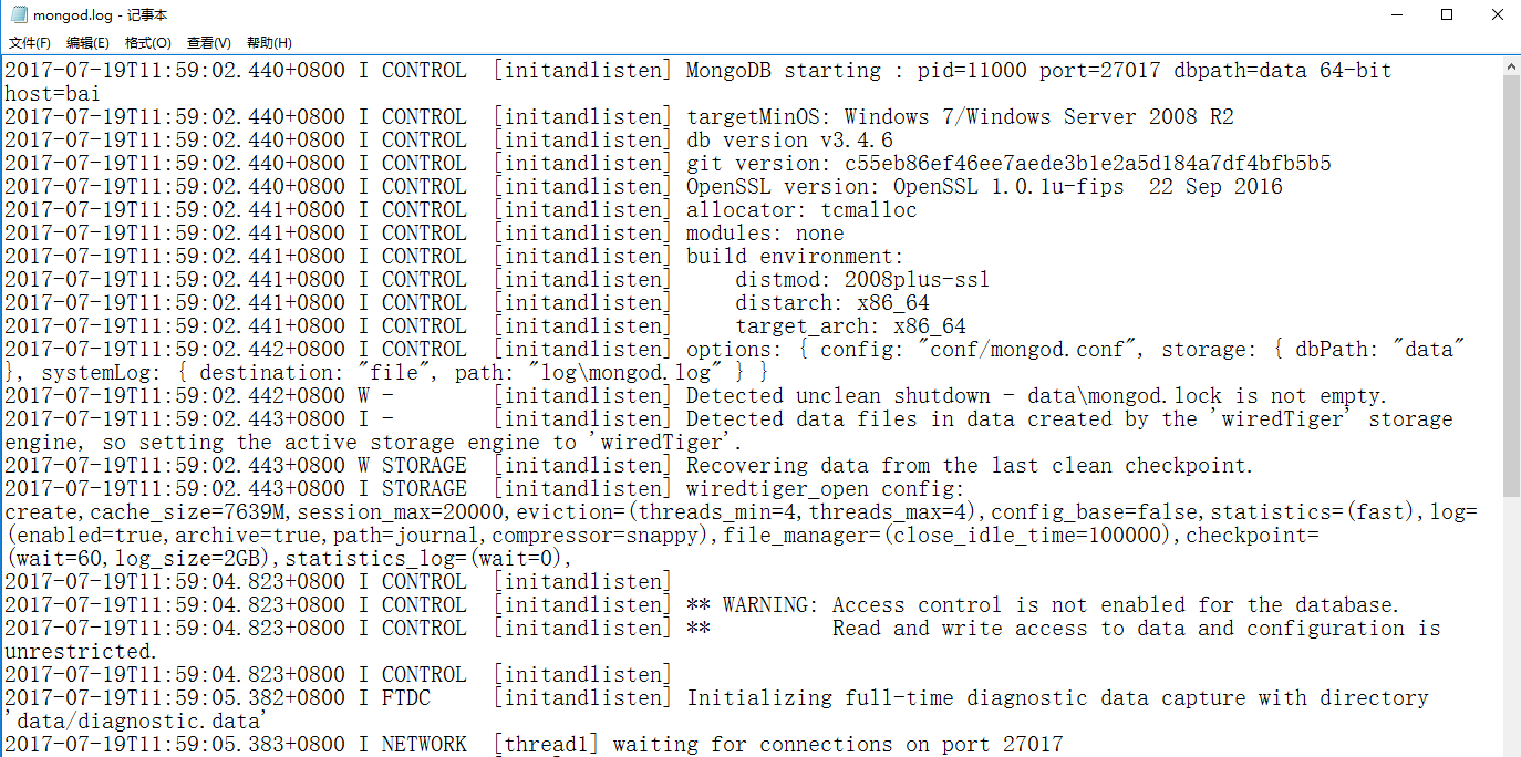 日志會記錄mongodb的運行狀態,包括連接時間、當前正在進行的操作等