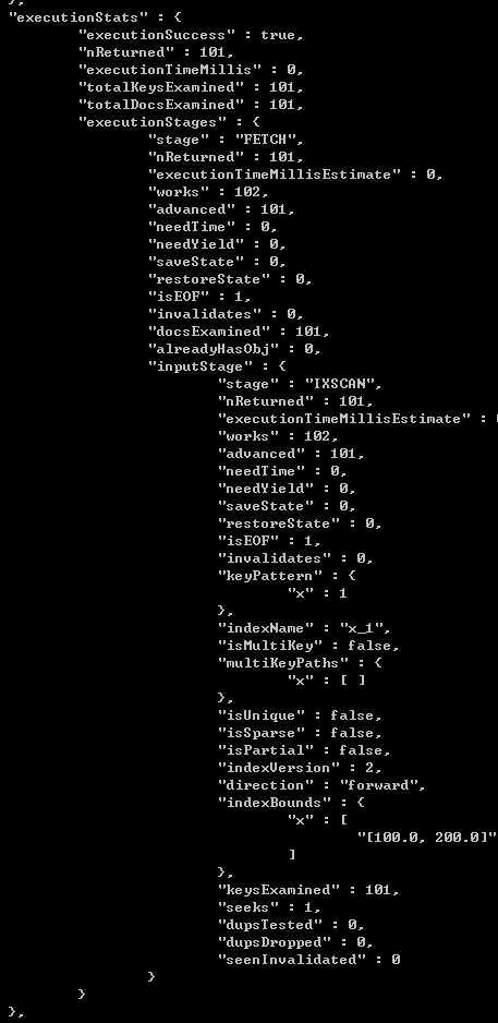 queryPlanner.winningPlan.inputstage.indexBounds: 所掃描的索引范圍