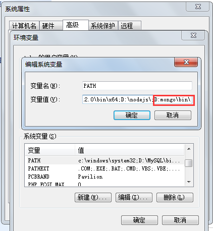 我們并不想每次啟動mongodb都去找bin目錄,因此我們需要配置下環境變量,也就是在path后面添加你的bin目錄