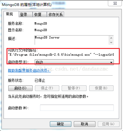 查看服務屬性,Mongo的地址是已經刪除了的個地址,而不是當前我用的這個地址。當前用的地址是:E:/Program files/mongodb/bin