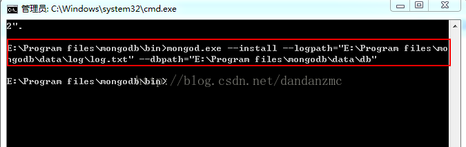 安裝:mongod.exe --install --logpath="E:/Program files/mongodb/data/log/log.txt" --dbpath="E:/Program files/mongodb/data/db"