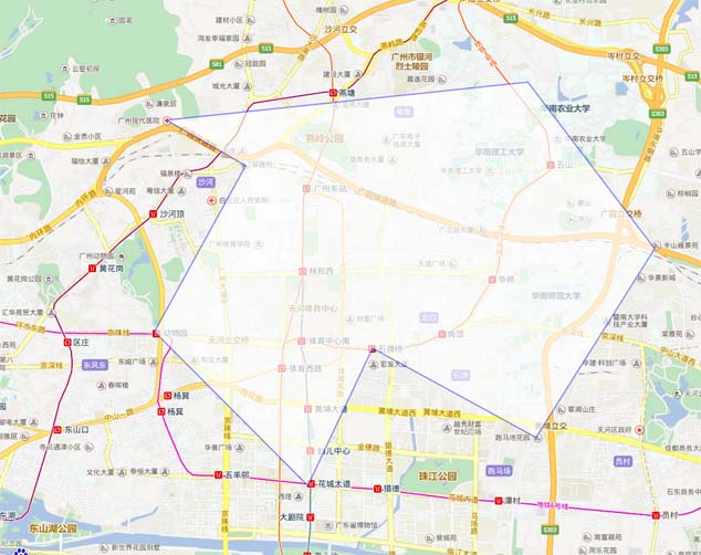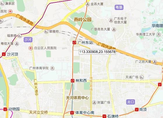 廣州東站坐標:113.330908,23.155678 (多邊形內)