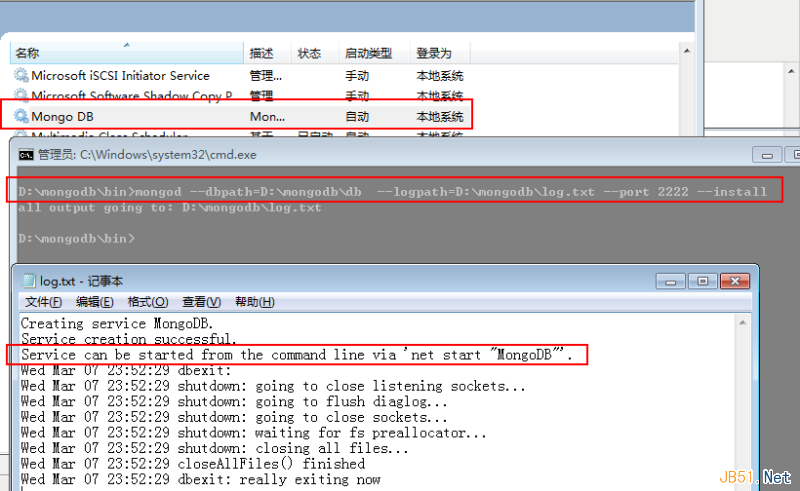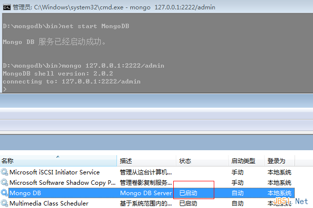 在mongodb里面提供了一個(gè)叫做“服務(wù)寄宿”的模式,我想如果大家對(duì)wcf比較熟悉的話很容易聽懂。好了,我們實(shí)踐一下,這里我開一下D盤里面的mongodb。