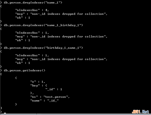 種操作的性能,因為這玩意需要實時維護,所以啥問題都要綜合考慮一下,這里就把剛才建立的索引清空掉來演示一下:dropIndexes的使用。