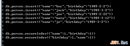 這里我們使用了ensureIndex在name上建立了索引。”1“:表示按照name進行升序,”-1“:表示按照name進行降序。