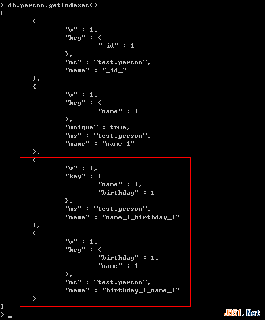 那么我們可以用getindexes來查看下person集合中到底生成了那些索引。