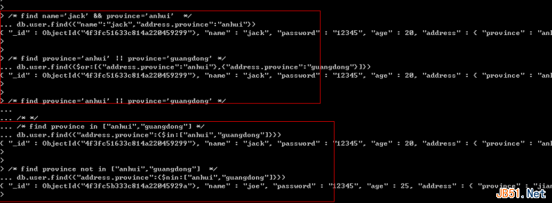 <2> "無關鍵字“, "$or", "$in","$nin" 同樣我也是舉幾個例子
