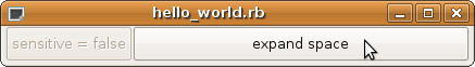 vbox do button 'sensitive = false', :sensitive => false # 初始為disable狀態 button 'expand space', :layout => [true, true] # 指定這個button填充剩余空間 end