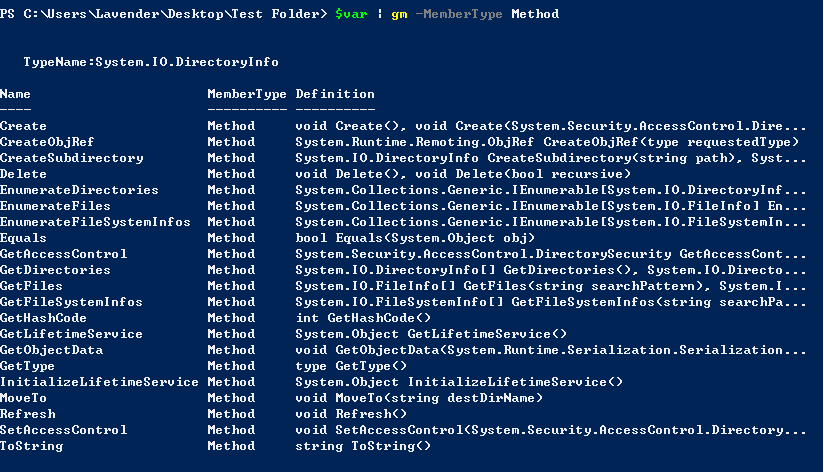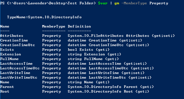 管道操作的時候經常會用到管道輸入對象的屬性,使用Get-Member(gm)來獲取對象的屬性和方法。