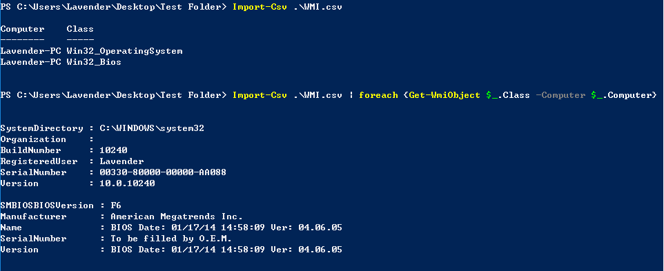 如果要對大量的數據進行處理簡單的任務,可以把數據保存在一個CSV文件里面,使用Import-Csv來導入數據,導入后為每一行自動創建對象,并將列的名字作為對象的屬性,之后用foreach對數據的每一項進行操作。