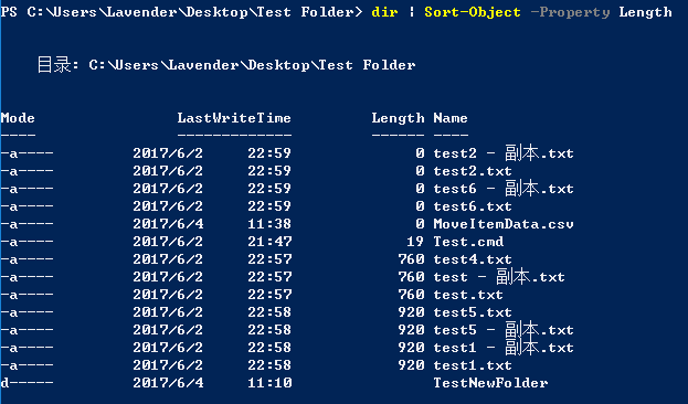 “Get-ChildItem”意思是獲取當前路徑的所有項目,“|Where-Object {$_.Length -gt 200}”意思是查看上一步結果,取所有長度大于200的項目,“|Sort-Object -Descending Name”意思是查看上一步結果,按照Name進行倒敘排列。