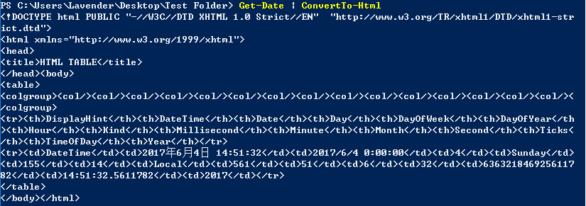 用ConvertTo-Html可以將Microsoft.Net Framework對象轉換為可在Web瀏覽器中顯示的HTML: