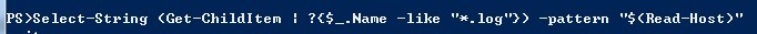 Get-ChildItem是得到當(dāng)前面目錄下的所有項(xiàng),然后通過管道| 輸入給?(就是Where-Object的別名)來篩選,及篩選當(dāng)前目錄下的log文件,$_代表當(dāng)前對象,即前面查出的結(jié)果,-like使用了模式匹配,$(Read-Host)是從控制臺讀入,類似C#中的ReadLine()(相應(yīng)的標(biāo)準(zhǔn)輸出是Write-Host),即當(dāng)用戶輸入一個關(guān)鍵字后,命令會從后向前的執(zhí)行。