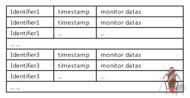 data數(shù)據(jù)管理著各個(gè)時(shí)間線的監(jiān)控狀態(tài)數(shù)據(jù),可以為量化數(shù)據(jù)、地理位置、文字表述任意類型。data數(shù)據(jù)按照+有序排列,因而同一時(shí)間線的所有數(shù)據(jù)基于時(shí)間有序,這種數(shù)據(jù)存儲(chǔ)方式,極大的提升了時(shí)間線的查詢效率。