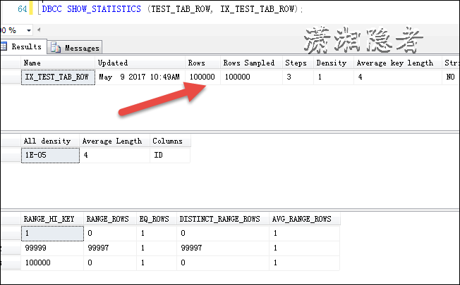 我們插入500條記錄,此時,這個數據量不足以觸發統計信息更新,如下所示, Rows Sampled還是1000000