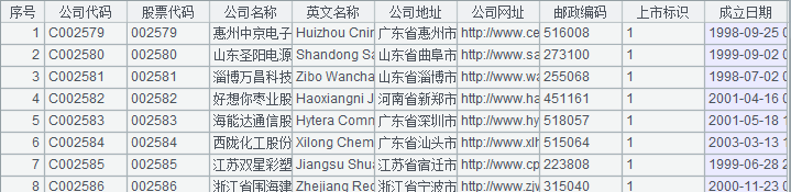 兩個表的主鍵都是 (公司代碼, 股票代碼),且股票信息的主鍵與公司信息的主鍵有邏輯意義上的外鍵約束關(guān)系,二者互為同維表。
