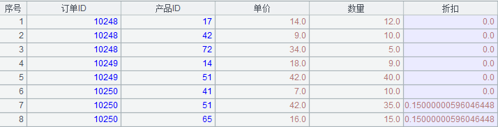 其中訂單是主表,主鍵為 (訂單 ID);而訂單明細為子表,主鍵為 (訂單 ID, 產(chǎn)品 ID),且訂單明細的主鍵字段訂單 ID,與訂單的主鍵有邏輯意義上的外鍵約束關(guān)系,顯然二者為主子表的關(guān)系。