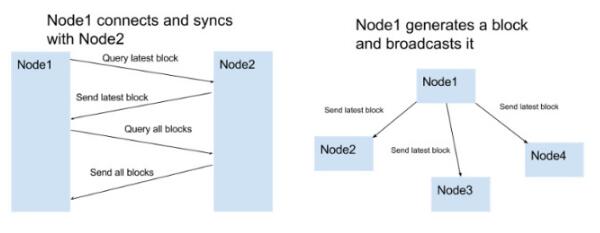 結點的本質是和其他結點共享和同步區塊鏈,下面的規則能保證網絡同步。