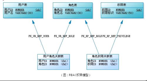RBAC(Role-Based Access Control,基于角色的訪問控制),就是用戶通過角色與權限進行關聯。簡單地說,一個用戶擁有若干角色,每一個角色擁有若干權限。這樣,就構造成“用戶-角色-權限”的授權模型。在這種模型中,用戶與角色之間,角色與權限之間,一般者是多對多的關系。(如下圖)