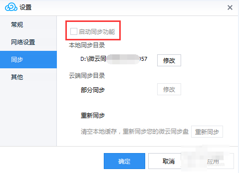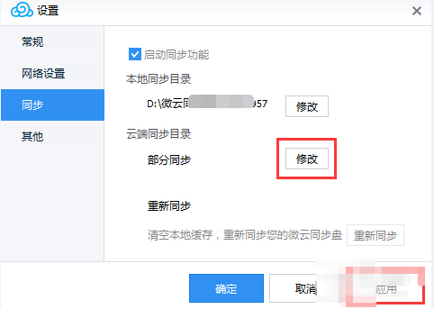 4、勾選完成之后,可以修改本地同步目錄了,但云端同步目錄還不能修改,需要先點擊應用,然后云端同步目錄的修改按鈕就可以修改了
