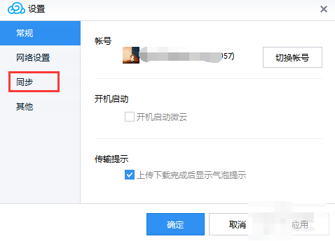 2、在設置頁面中,默認顯示的是常規設置頁面,點擊同步菜單,進入同步功能設置頁面