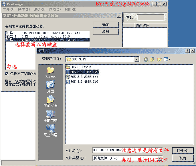 ros3.30的img文件不能使用physdisk.exe寫入到大于2G硬盤中的方法: