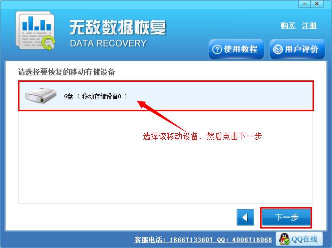 第三步:選擇需要恢復(fù)數(shù)據(jù)的移動(dòng)硬盤并點(diǎn)擊“下一步”按鈕。