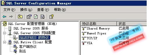 在網(wǎng)絡(luò)配置中選擇SQLEXPRESS協(xié)議 如下圖所示: