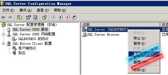 所有的設(shè)置完成之后,重新啟動(dòng)SQLEXPRESS服務(wù)。
