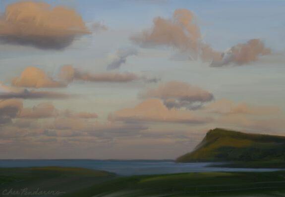 “倫諾克斯的黃昏”使用油畫筆和調和筆進行繪畫。