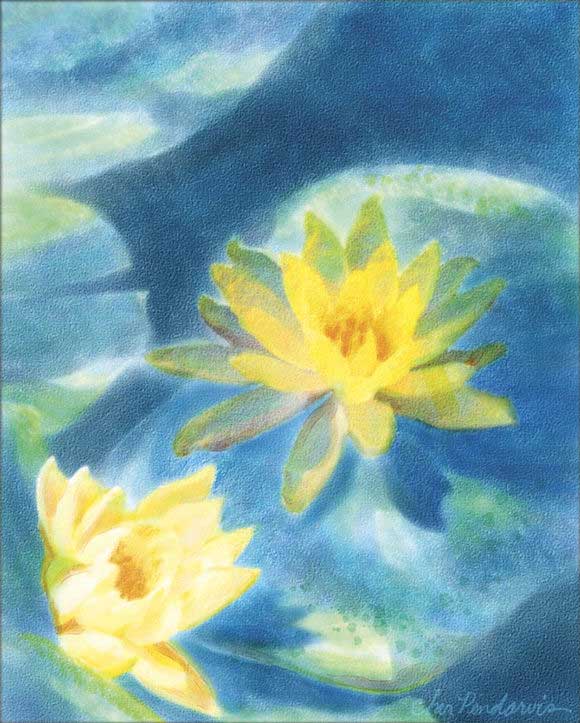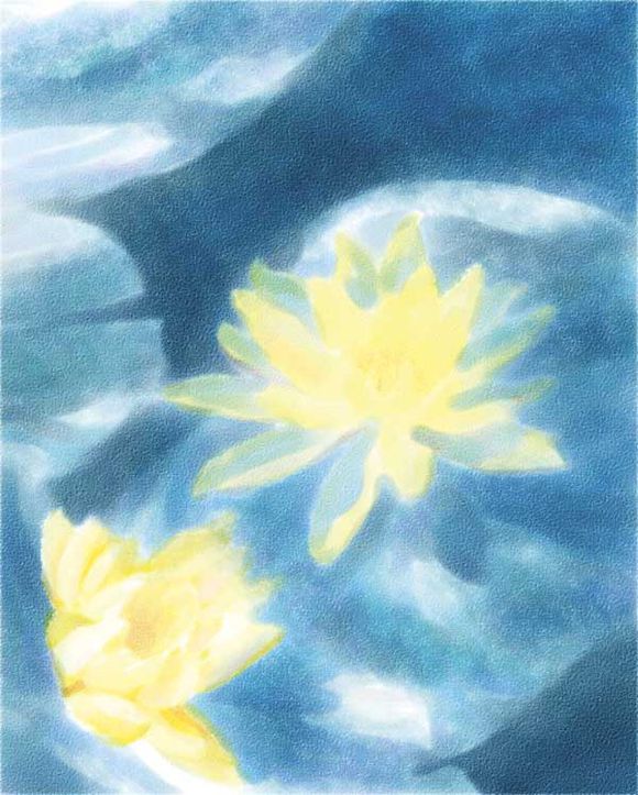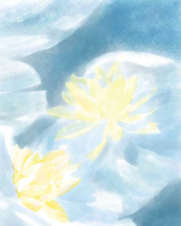 睡蓮是一副自由水彩畫,使用 corel® painter™ 和 wacom® intuos® 壓感蠟版和蠟版筆繪畫而成。 我采用了水彩濕筆技法,并添加了細節和紋理。 濕筆畫法是一種傳統技法,可以使用 painter 的水彩圖層進行仿真。 濕筆是應用顏色的最流暢方式,因為它可以在應用新顏色的同時保持紙張的濕性,從而讓新顏色與現有濕性顏料相調和。 通過水彩圖層,可以在繪畫時讓畫筆應用的顏料滲透并擴散到紙紋中,并畫出與現有濕性顏料相調和的水洗效果。