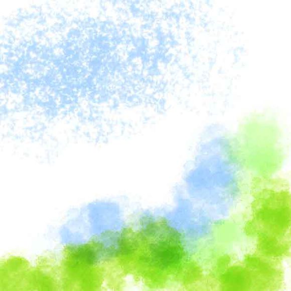 我用來繪制紋理的兩支最喜愛的畫筆是“仿真濕海綿”和“不規則碎片形濕性水洗”。 圖像上半部分是用“仿真濕海綿”繪制的藍色紋理。 圖像下半部分是用“不規則碎片形濕性水洗”繪制的藍色和綠色紋理。
