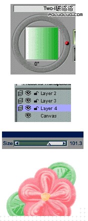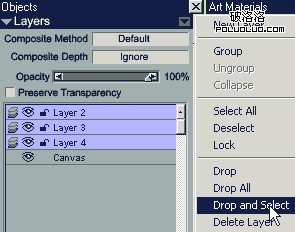 11、按住shift鍵,選擇所有的層而將花群組,然后選擇Drop and Select,接著到主面板選擇float將花放在它自己的層上.